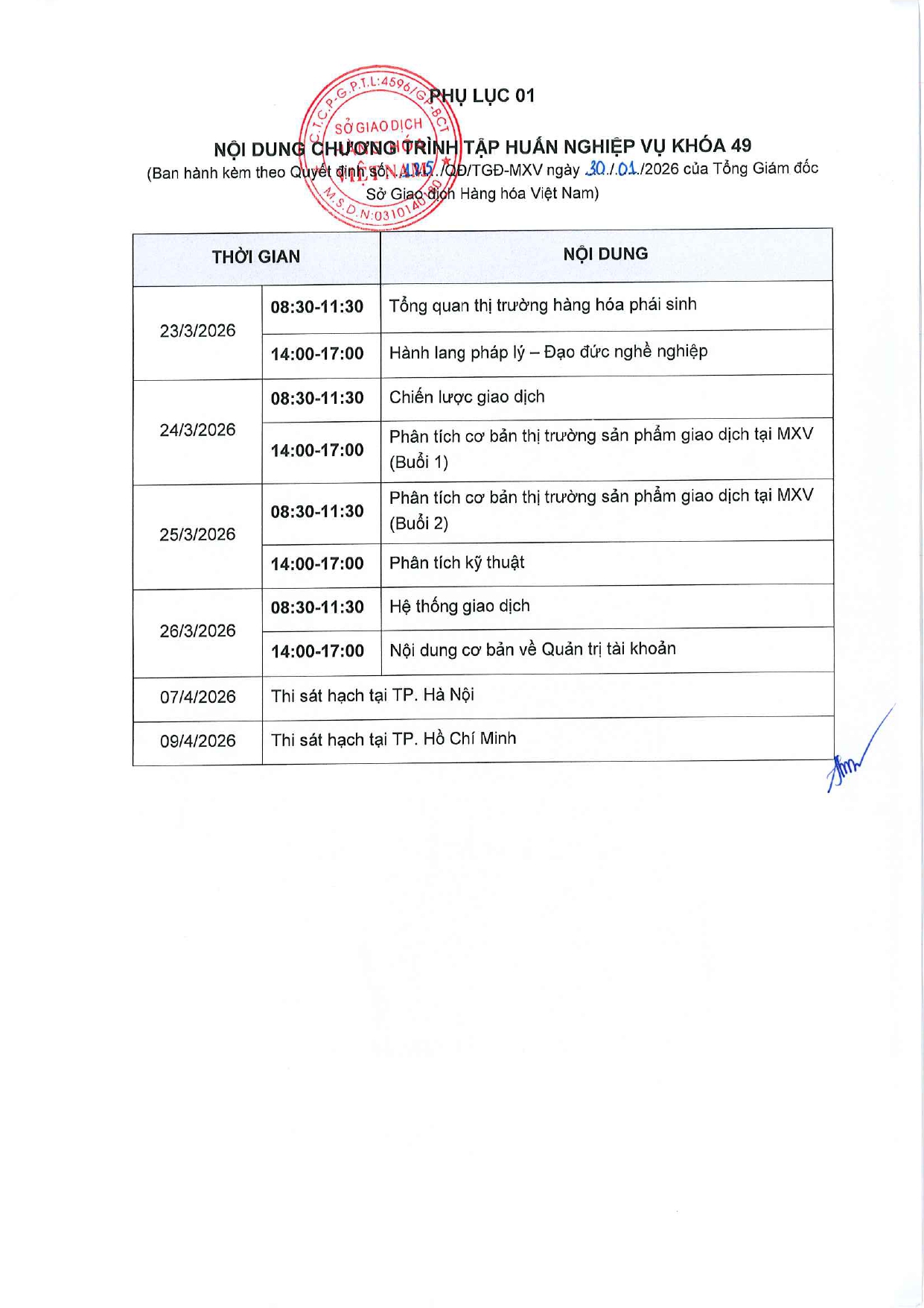 Trung tâm Nghiên cứu khoa học – Sở Giao dịch Hàng hóa Việt Nam xin thông báo tới các Quý Thành viên kinh doanh, Thành viên môi giới và các Đối tác và các tổ chức, cá nhân lịch Tổ chức Chương trình tập huấn nghiệp vụ Khóa 49 theo Quyết định tổ chức tập huấn số 125/QĐ/TGĐ-MXV ngày 30/01/2026.