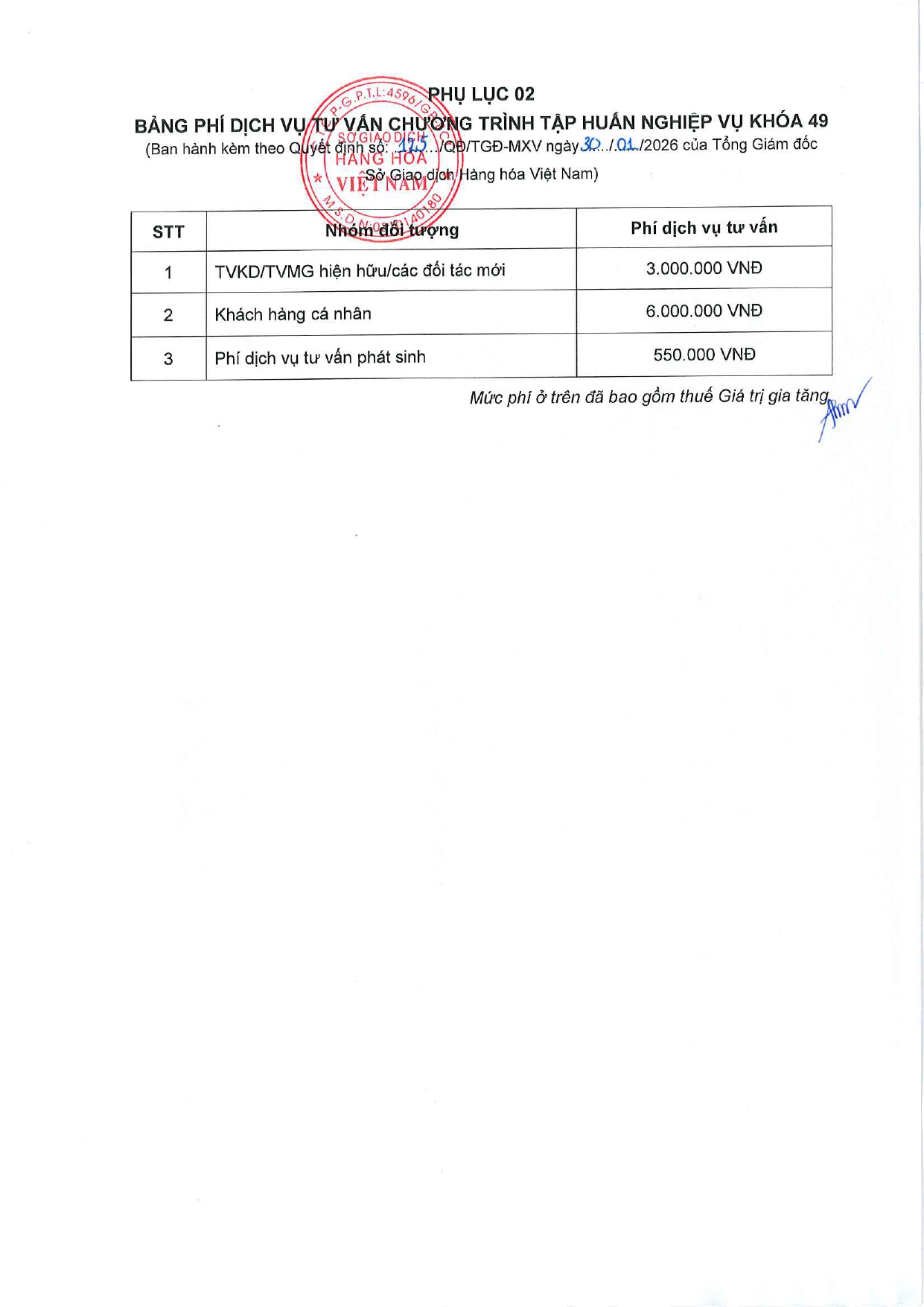 - Phí tập huấn đối với Khách hàng cá nhân: 6.000.000 VNĐ/Học viên-