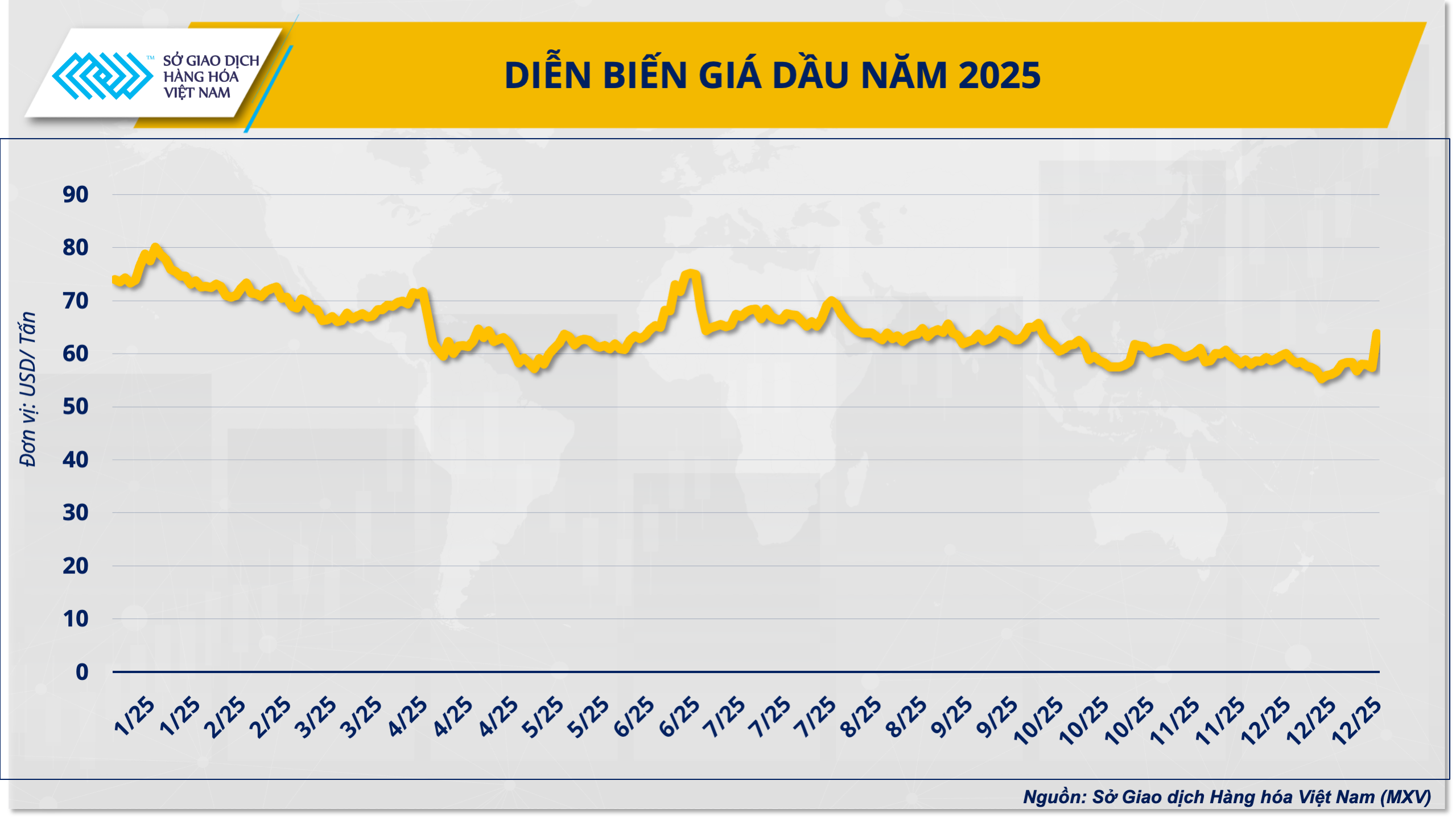 Ảnh 1. Diễn biến giá dầu năm 2025 (Nguồn: MXV)