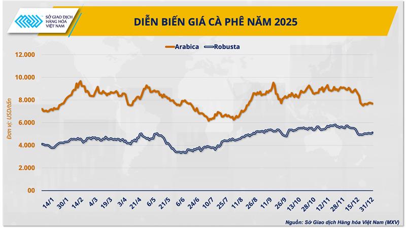 Dù áp lực thu hoạch cuối năm tại Việt Nam giúp giá Robusta hạ nhiệt phần nào, giá Arabica vẫn duy trì ở mức cao quanh 8.000 USD/tấn, do tình trạng thiếu hụt nguồn cung kéo dài tại Brazil và Colombia, kết hợp với mức tồn kho thấp kỷ lục tại Liên minh châu Âu (EU).