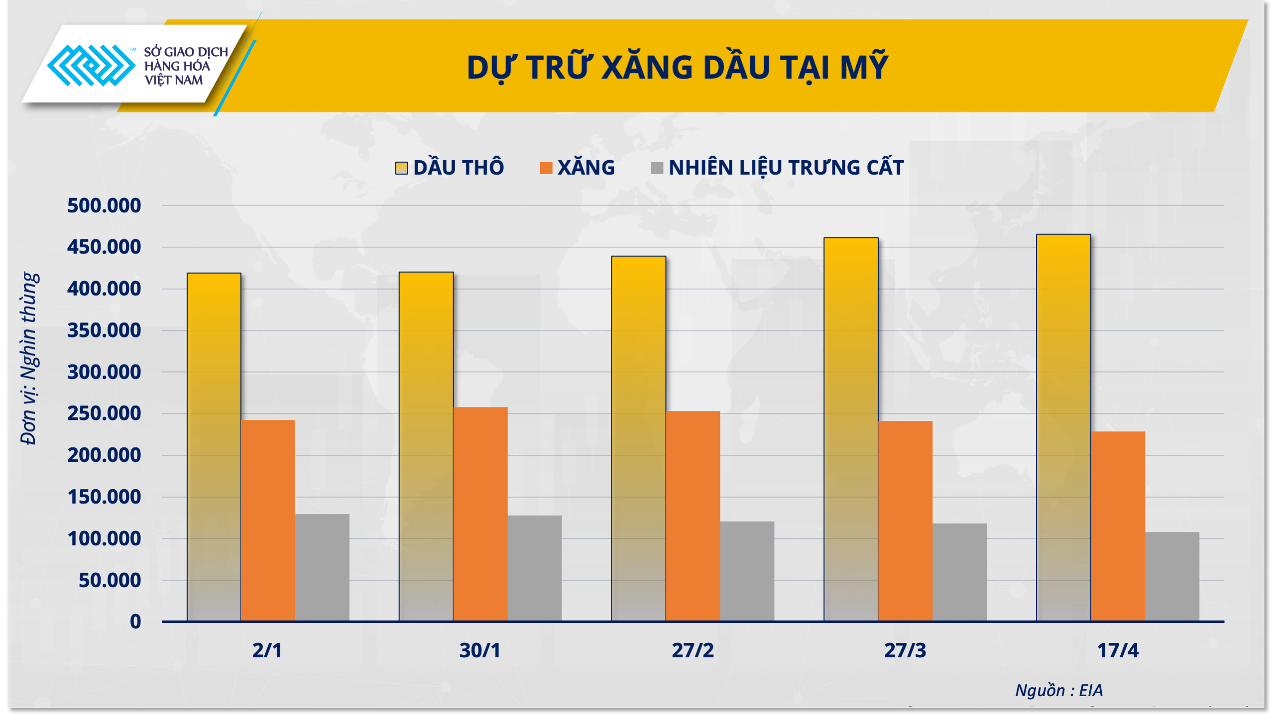Trong phiên vừa qua, thị trường không ghi nhận thông tin đột biến liên quan đến tiến trình đàm phán giữa Mỹ và Iran. Tuy nhiên, các số liệu từ báo cáo hàng tuần của Cơ quan Thông tin Năng lượng Mỹ (EIA) lại trở thành yếu tố chi phối chính.