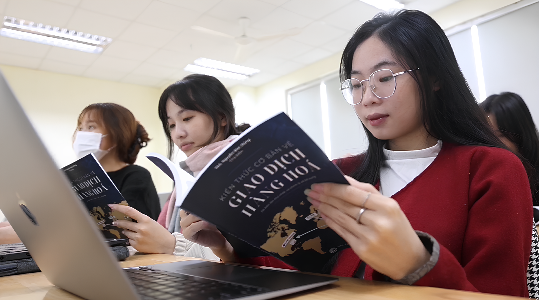 Ảnh 2. Sinh viên tiếp cận kiến thức cơ bản về giao dịch hàng hóa thông qua ấn phẩm chuyên ngành