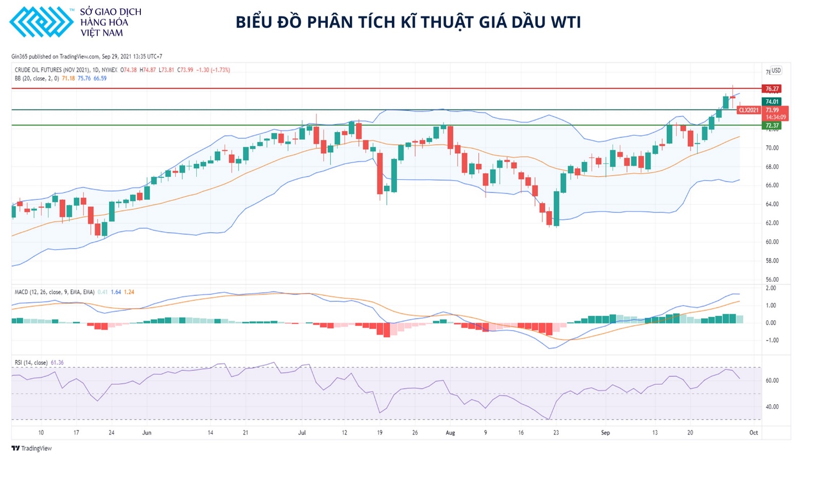 Giá Brent quay đầu giảm sau khi chạm mức 79.95 USD/thùng, trong khi WTI cũng tiến sát đến kháng cự 76.7 USD/thùng. Việc thiếu hụt các thông tin hỗ trợ làm tăng lực bán chốt lời, đặc biệt là tại thời điểm nhạy cảm khi OPEC+ sẽ họp vào thứ 2 tuần sau. Giá cao có thể khiến các đối tác lẫn các thành viên nội bộ kêu gọi nhóm tăng hạn ngạch sản lượng, như Nigeria.